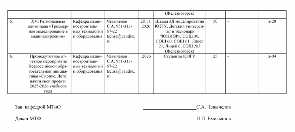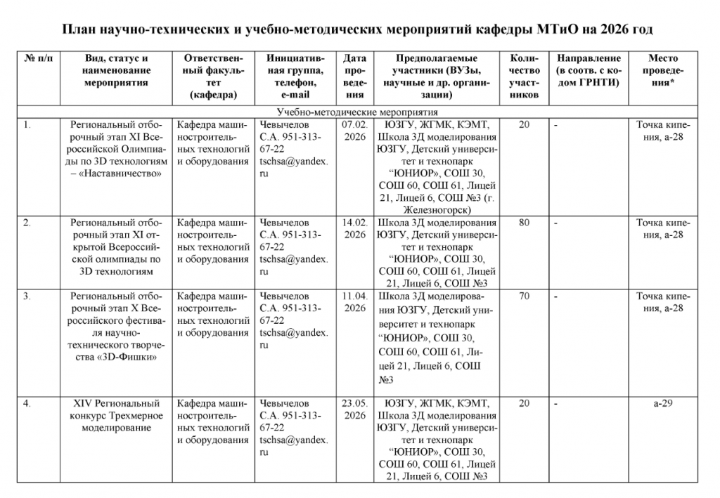План научно-технических и учебно-методических мероприятий кафедры МТиО